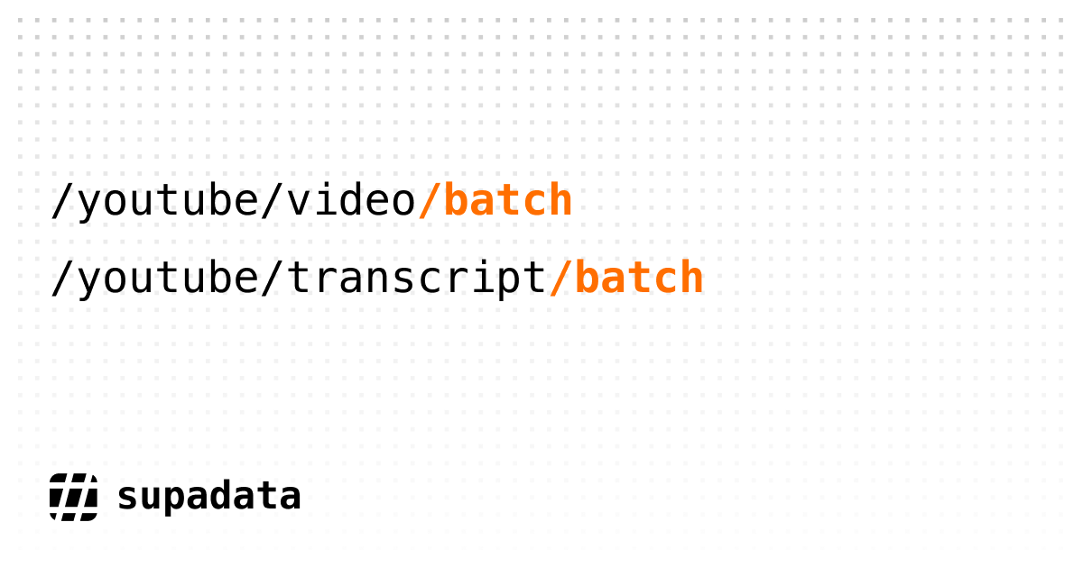 Ever wanted to analyze video content of a whole YouTube channel? We've made it even easier to fetch large quantities of YouTube data. Enter: Batch Operations. Provide a channel handle, playlist URL or just a list of YouTube video IDs, and we'll fetch for you all transcripts and video metadata for you. See Documentation