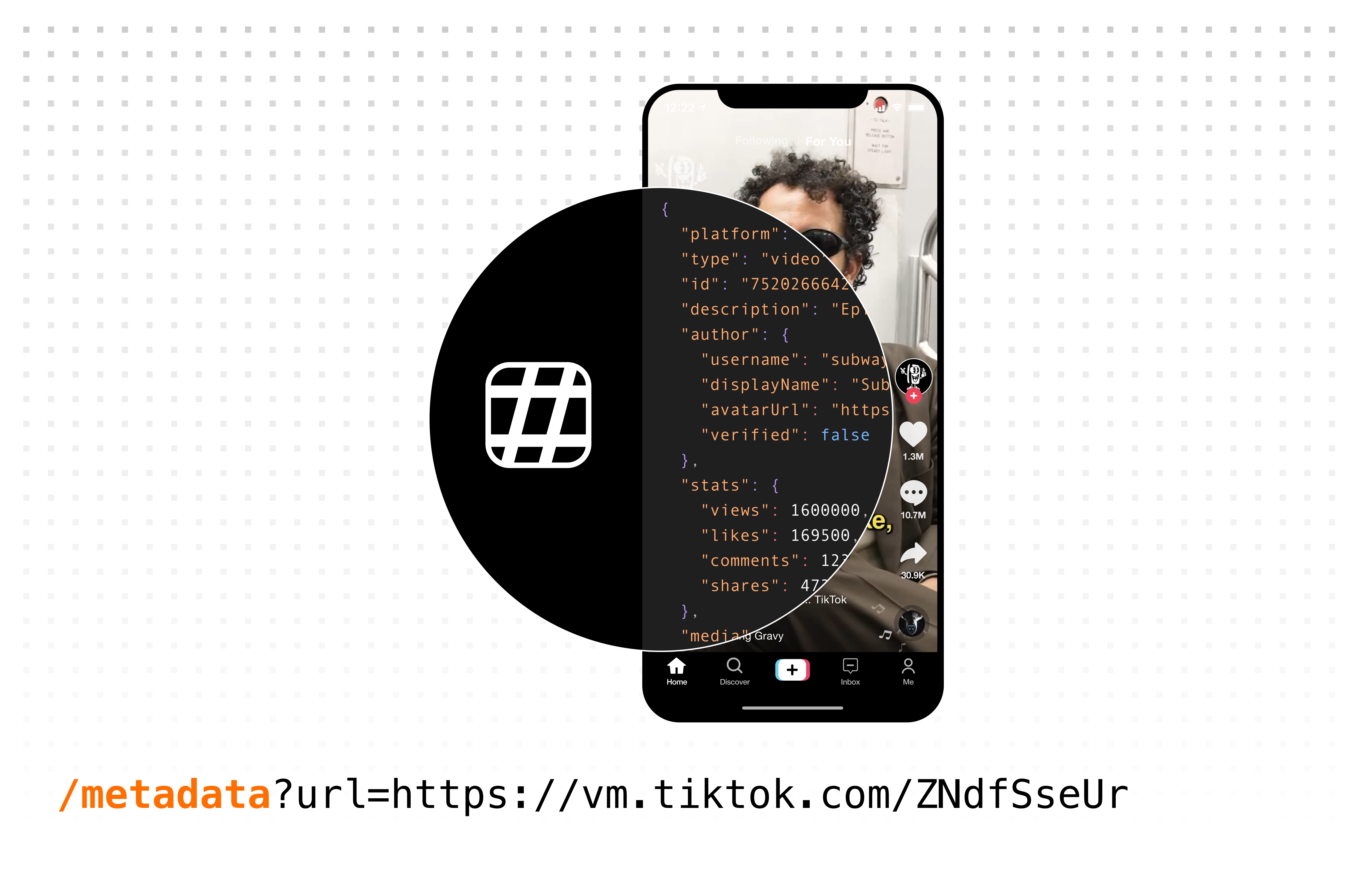 Now you can use the Supadata API to fetch media metadata in your product. Get TikTok, Instagram, YouTube and X post information with one simple endpoint. Our goal is to ship the most versatile, easy to use and reliable API to get structured data of any web media. More platforms coming soon. Check the documentation to get started: See documentation